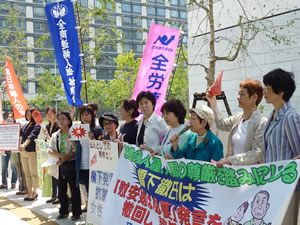 Mayor of Osaka City HASHIMOTO Toru, who is also a co-leader of the Japan Restoration Party, on May 13 said, “Everyone can understand that a comfort women system is necessary if you want to give soldiers some rest while risking their lives in the battlefield where bullets are flying like rainstorms.” The Women Bureau of Zenroren strongly protest against Mayor Hashimoto’s remark that tramples upon the basic human rights of women and demand that he retract the verbal abuse.