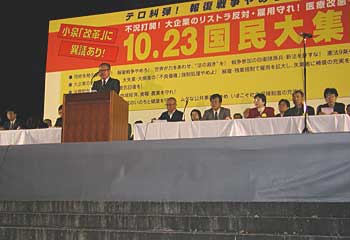 テロ糾弾!報復戦争やめろ!小泉「改革」に異議あり!10・23国民大集会が東京・明治公園で開かれ、全国から2万5000人が参加しました。