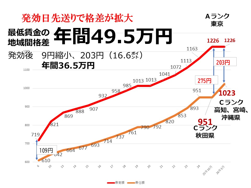3.「地域別最低賃金」である限り、生活できない低賃金も、地域間格差も、発効日の先送り・分散化も解消しない