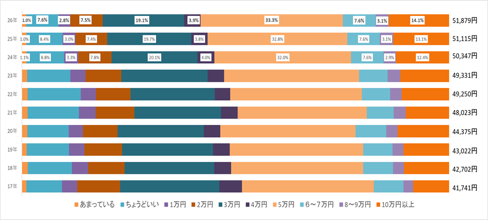 不足額の加重平均は51,879円で前年最終集計の51,115円を764円上回っており、年々増加しています。生活の厳しさが増している状況が伺えます。