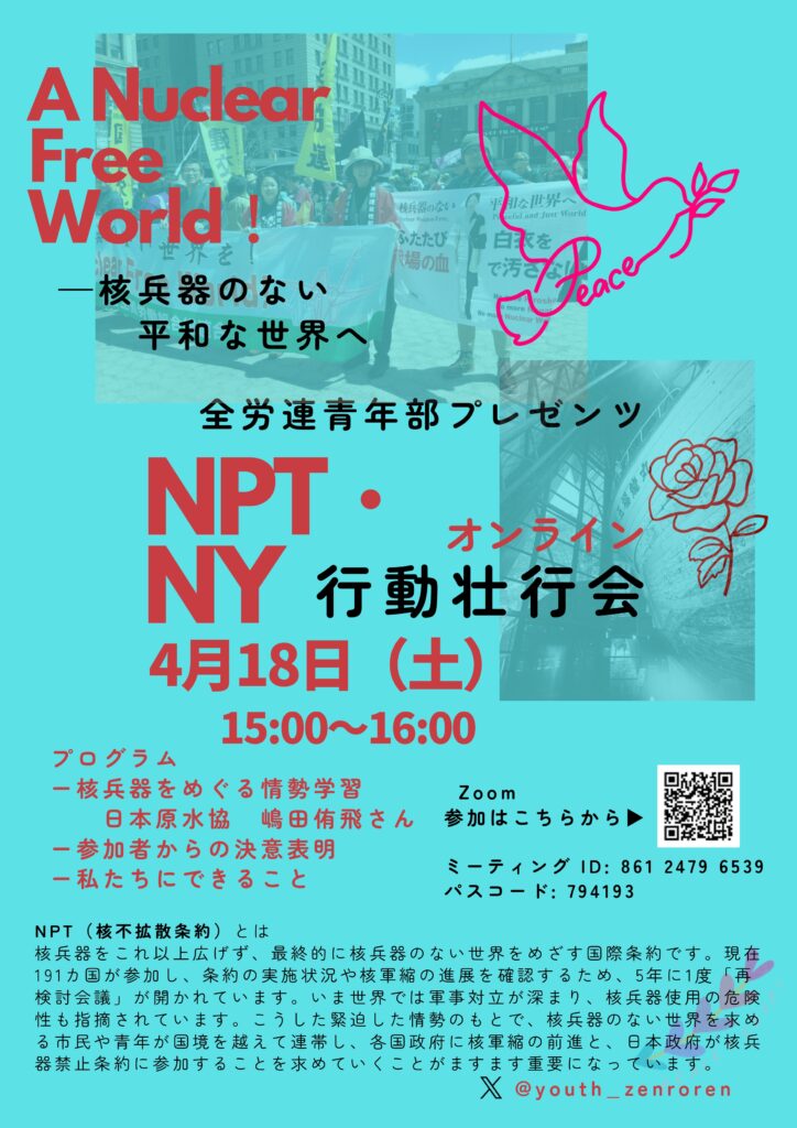 青年部主催 4月18日 NPT・ニューヨーク行動壮行会