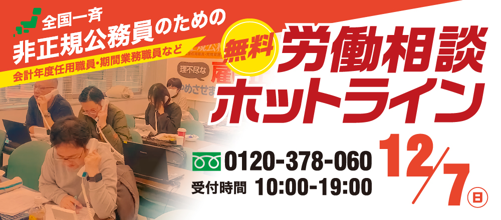 そんなお悩みに対応するため、私たちは全国いっせい非正規公務員(会計年度任用職員・期間業務職員など)のための無料労働相談ホットラインを、昨年よりも相談体制を強化して実施します!