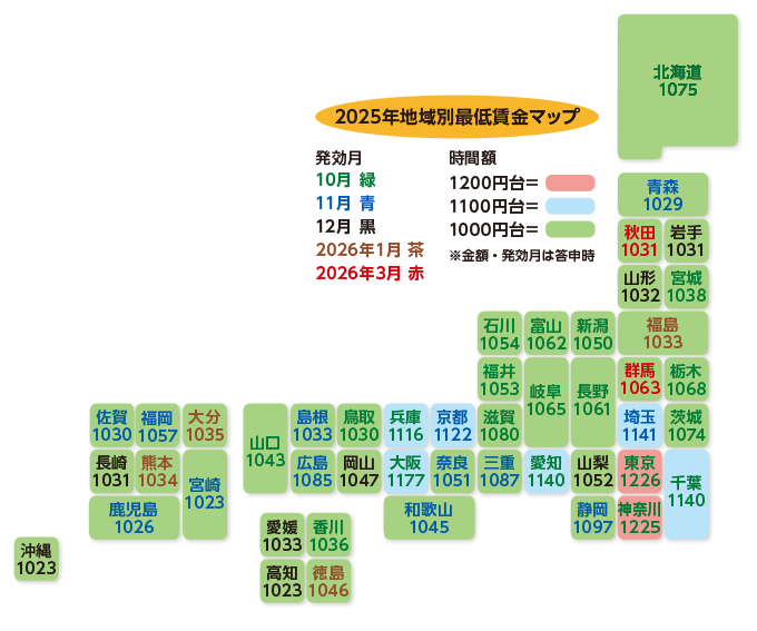 最低賃金は都道府県によって、金額も発効日(改定される日)も違います。これを「地域別最低賃金制度」といいます。