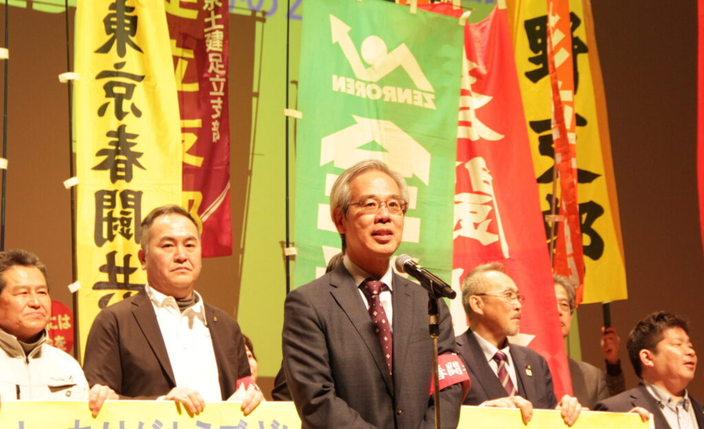 春闘総決起集会の閉会にあたり、ひとことごあいさつを申し上げます。国民春闘共闘委員会・代表幹事で全労連議長の秋山です。本日は、会場いっぱいの700人の参加で成功したことをご報告します。集会の成功に向け、参加いただいたみなさんと集会を準備いただいた事務局のみなさんに心から感謝を申し上げます。