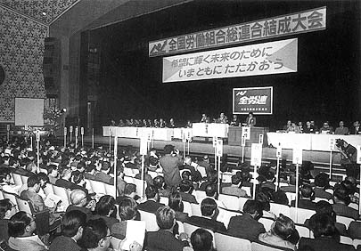 私たちは、それを断固として拒否し、働くものの利益をまもってたたかう労働組合の全国中央組織として全労連を結成しました。