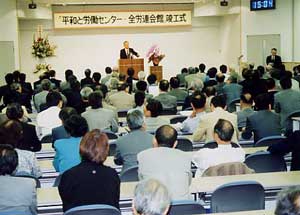 財団法人全労連会館の小林洋二理事長(全労連議長)が、会館建設にかかわった多くの関係者に感謝の主催者あいさつ。日本共産党の市田忠義書記局長、全日本民主医療機関連合会の高柳新会長、中央労働金庫の町田勇三副理事長が来賓あいさつ。厚生労働省の坂本哲也政策統括官、ILO(国際労働機関)のジェンダー特別アドバイザー駐日代表の堀内光子さんらも出席し、紹介された。