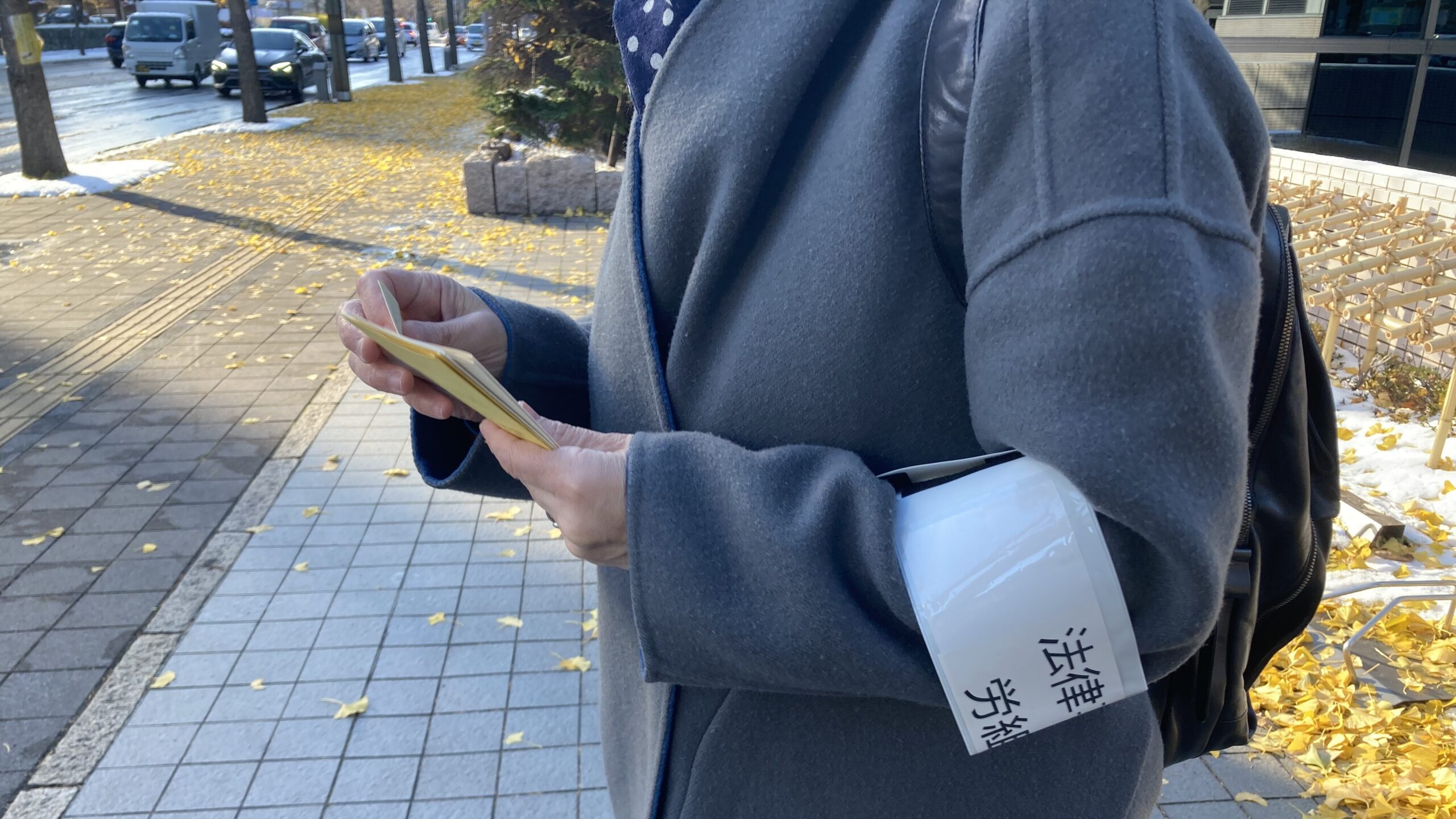 2023年11月、札幌地方裁判所の近くの十字路で事務職員にアンケートを配布。45分で30人以上に手渡しすることができ、受取率はほぼ100%。その後の回覧も含め、約50人に私たちの存在を届けることができた。回収したアンケートには「賃金が低い」「始業終業の明確化」「休憩の取得」「情報共有できる場がほしい」などの声が寄せられ、まさに組合の必要性を裏付ける結果となりました。