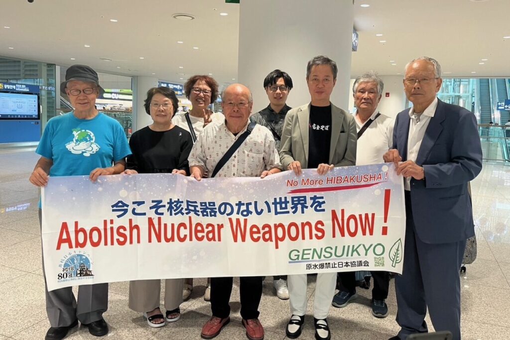 空港からソウルに向けて出発した「非核平和の東アジアへ、日韓連帯代表団」(9月9日)