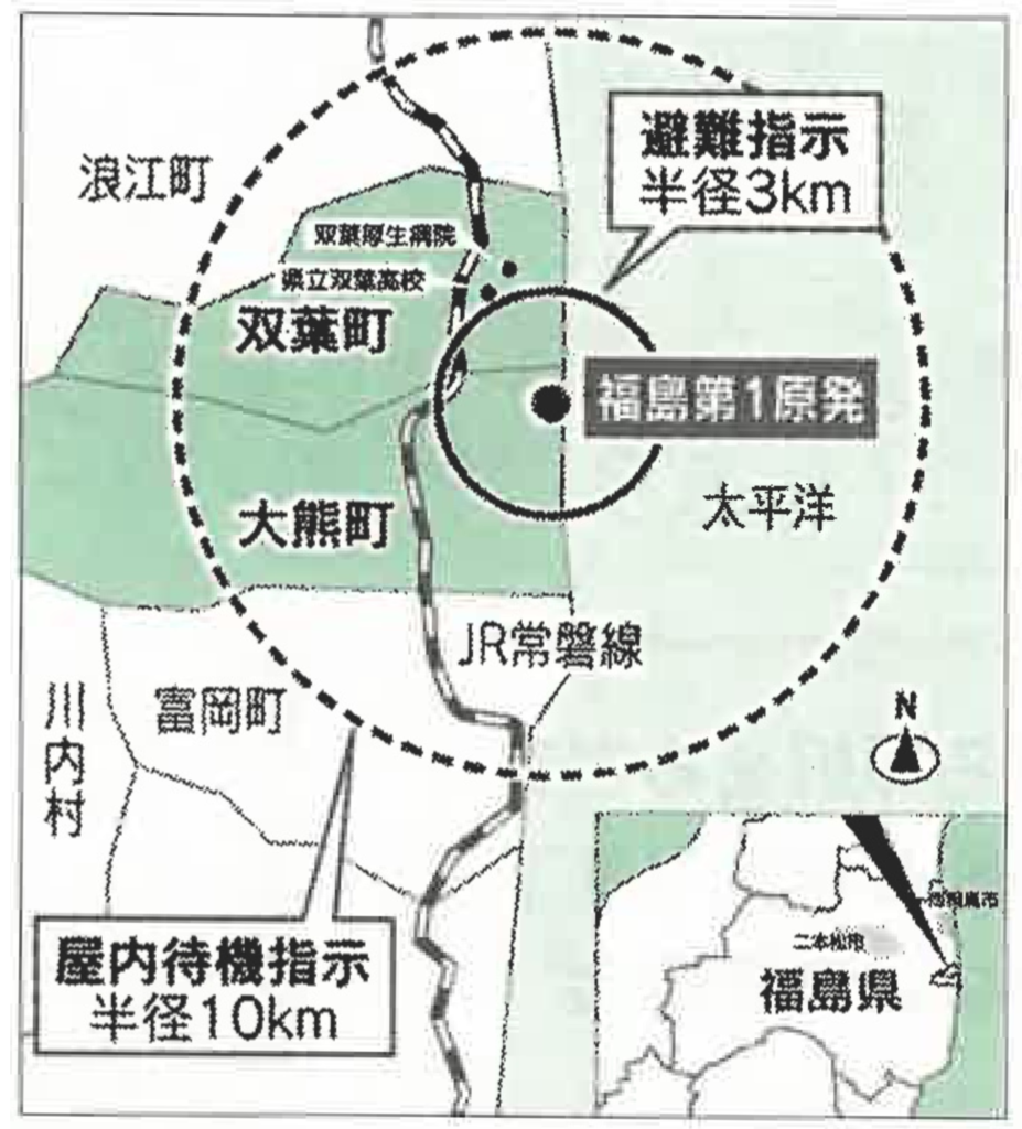 2011年3月11日の避難指示地域(図は全労連新聞編集部作成)
